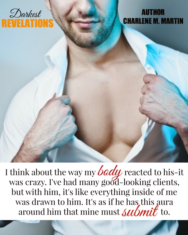 Editorial Review: “Whiskey’s Darkest Revelations exploit the darkest parts of him and when he’s expressing his darkness he begins to lure Rebecca into wanting to explore her sexuality. Another great Erotic read from Charlene M. Martin. WARNING: Hot steamy sex sizzling up these pages.” ~ Tammie Harms – For the Love of Books blog.